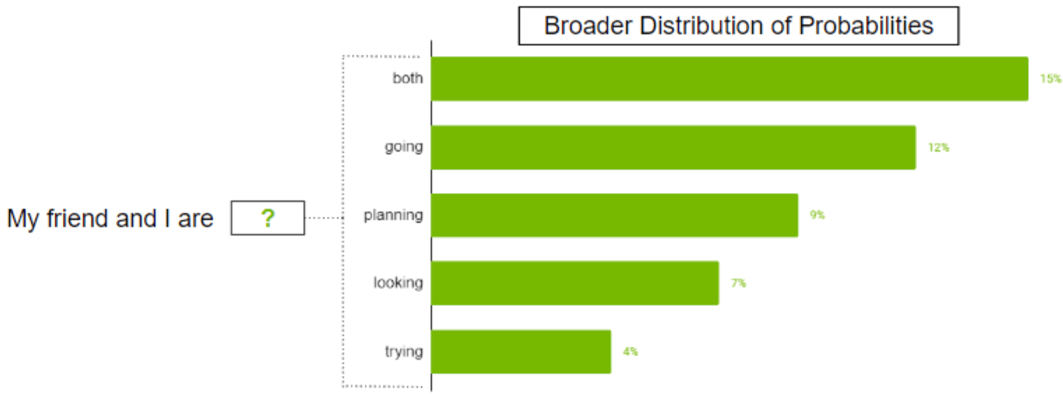 Snapshot of the app that shows how the model’s output is not a single word but a distribution from which the most likely word gets chosen.