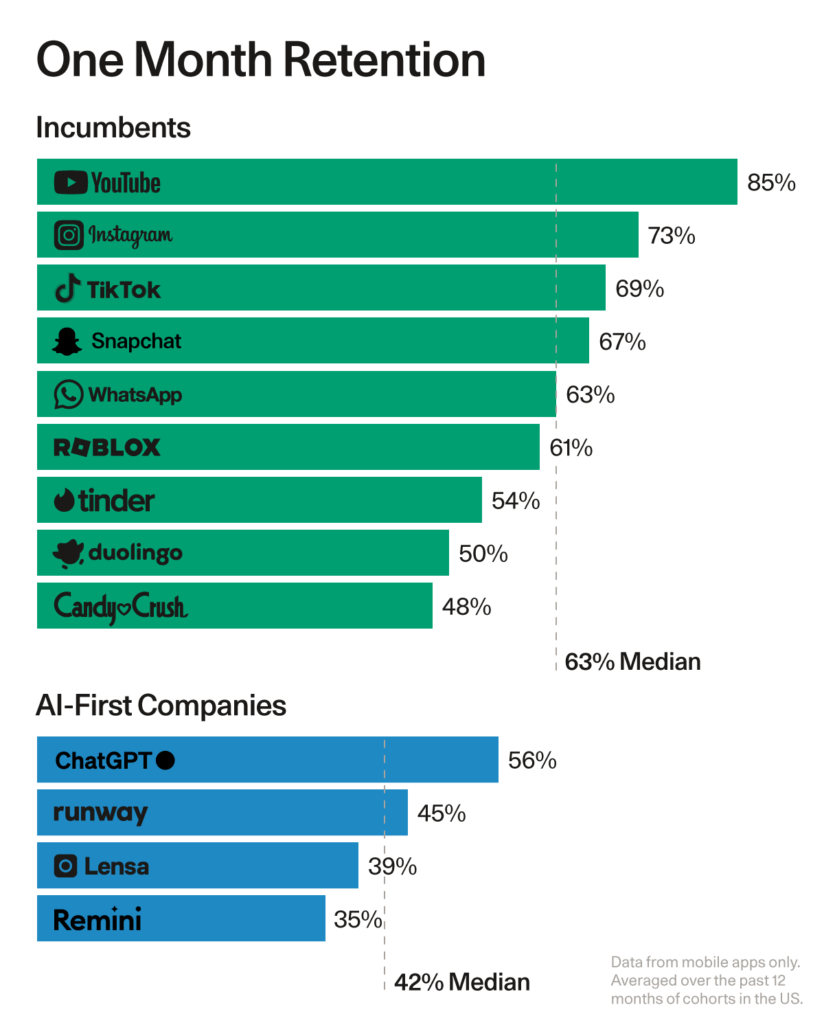 But why aren’t GenAI products exploding in revenues? Well, there seem to be two main reasons: retention and utility.