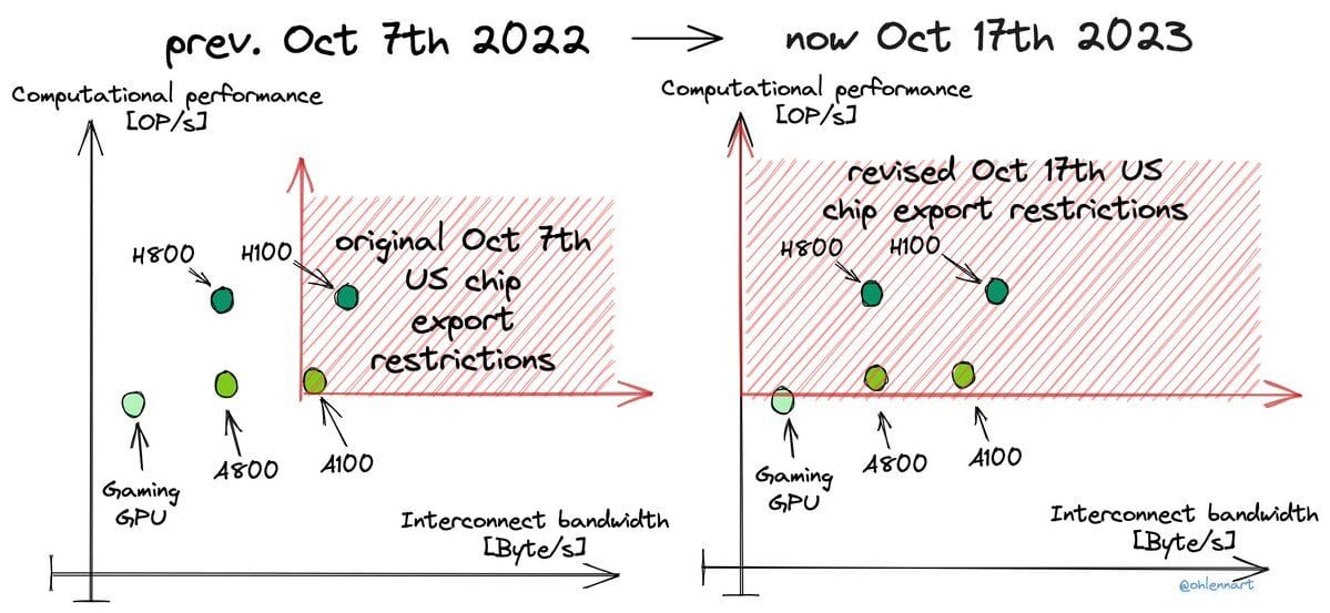Among other measures, they placed an export ban on companies like Nvidia or AMD from selling top-end AI GPUs (A100, H100) to Chinese entities.