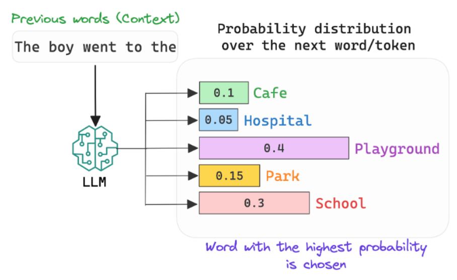 Consequently, the model slowly learns to assign the highest probability possible to the correct word, thereby learning to efficiently model language.