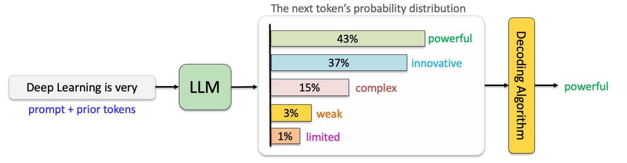 As shown below, what they actually output is a list of all the words in its vocabulary (the words it knows) ranked by likelihood. In other words, the model is saying, ‘Out of all the words I know, which is one more likely to be the next one?’