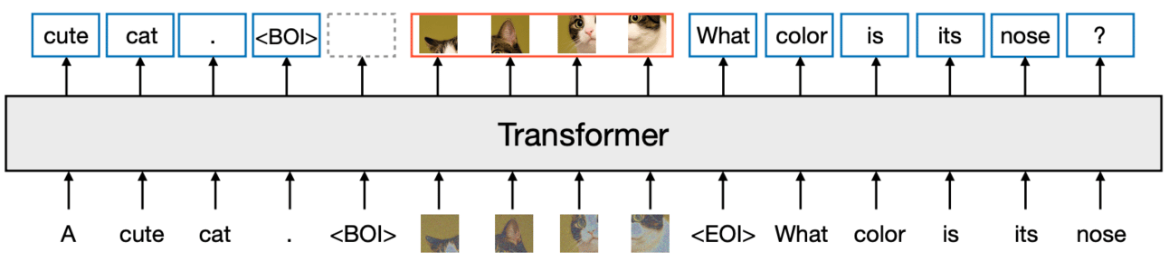 As seen above, while it might be generating text tokens autoregressively (one at a time with tokens only looking back, not forward), if the model identifies the need to create an image, it generates a special token, <BOI> (Beginning of Image), that signals it has to switch modes.