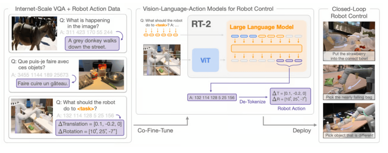 While we don’t know much of the underlying mechanisms of Figure AI’s robots, we can get a pretty good idea with examples like Deepmind’s RT-2 model, where researchers have already proven how to take an LLM and train it to output robot actions or text.