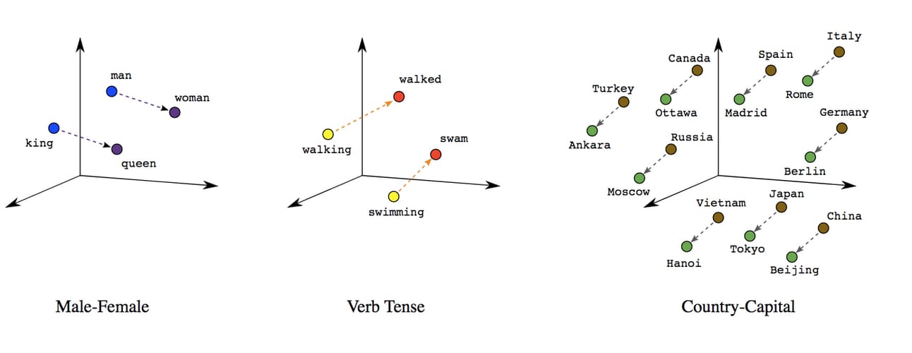 In other words, similar concepts will have similar vectors, meaning that they will be closer in the vector space when represented: