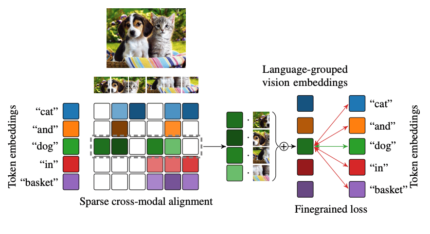 Then, for each patch, it assigns one of the tokens in the text description to it. If the patch covers a part of the dog’s body, then the patch will be assigned the word “dog”.