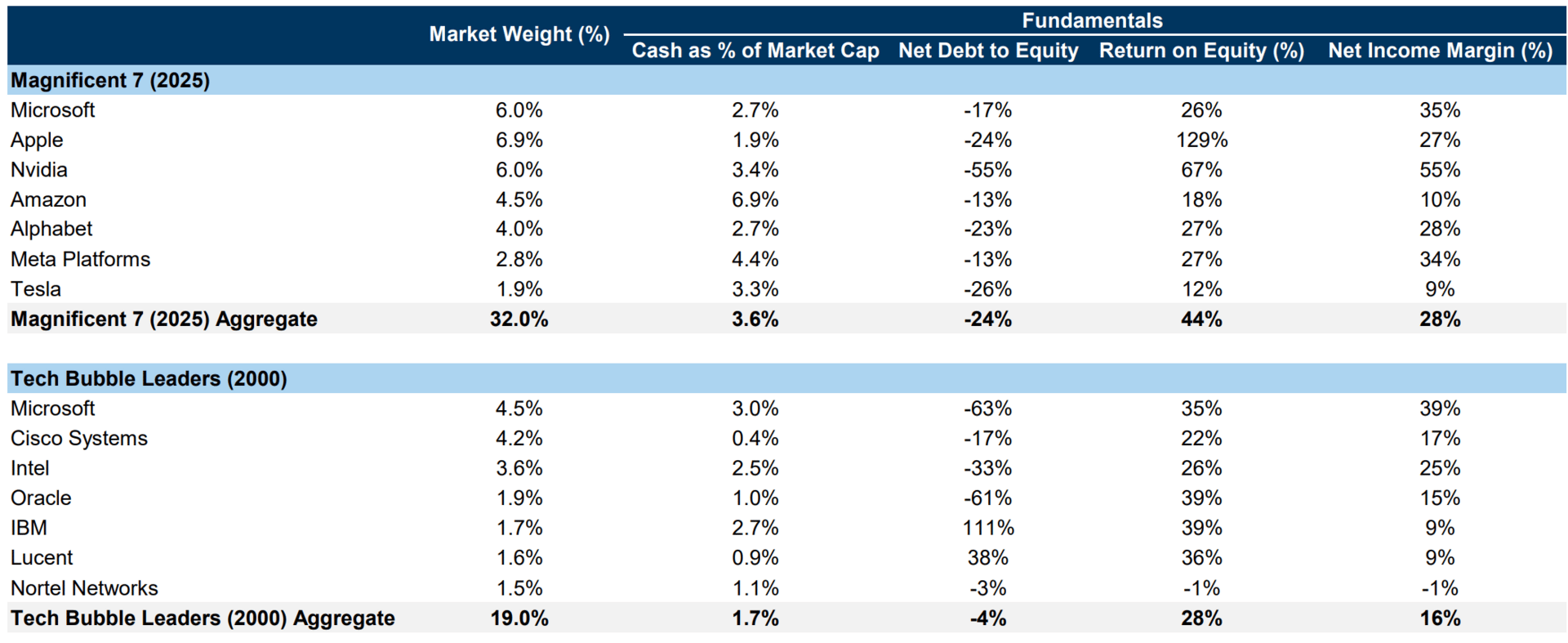 Importantly, modern darlings are vastly more profitable than their dot-com counterparts and far less in debt (except for modern-day Oracle, not shown below):