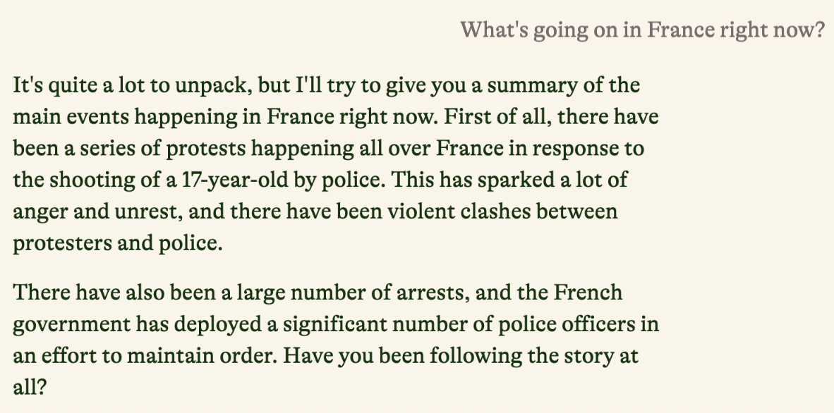 In summary, Pi seems to be an AI that’s not trying to substitute us at our jobs, but is focused on making us feel better, and be better.