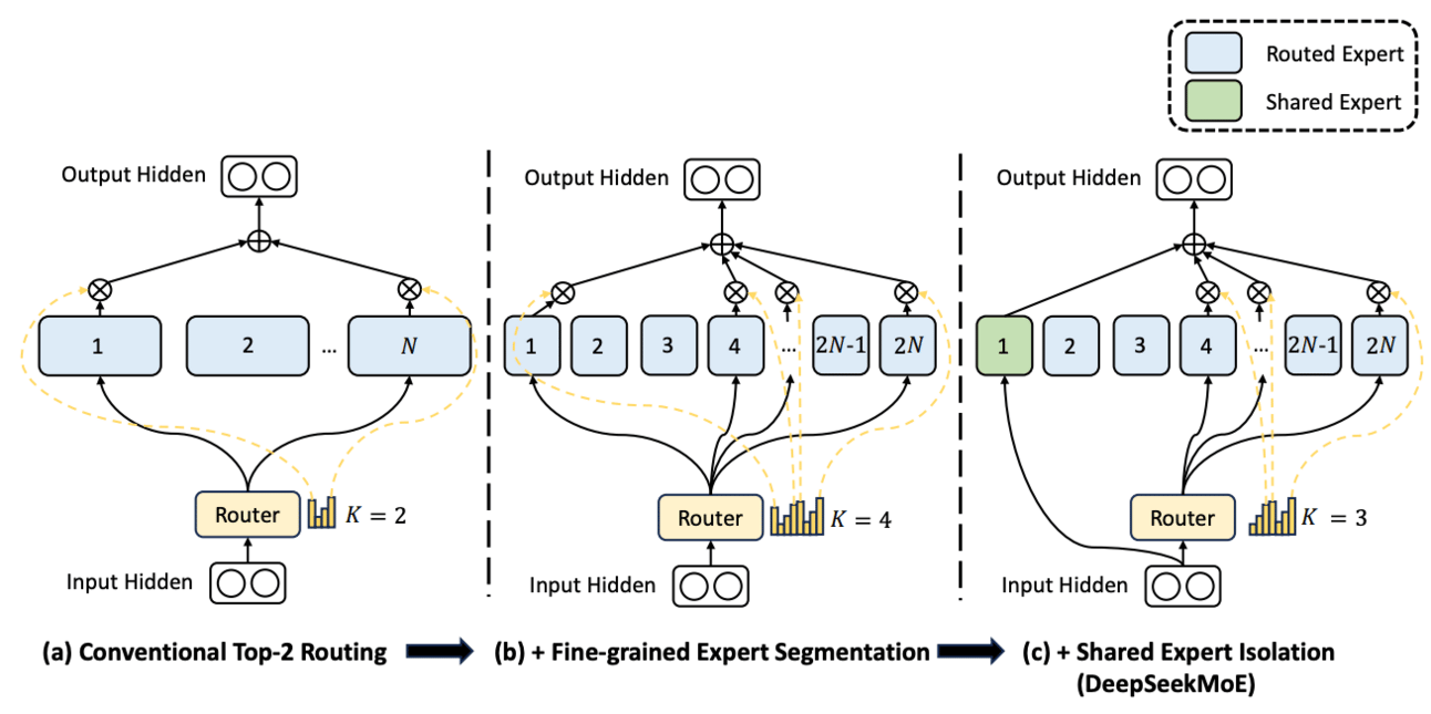 However, extreme hyperspecialization offers its problems, as too-specialized experts might be incapable of learning broader topics. To solve that, they include shared experts, a set of neurons that will fire for every single prediction.