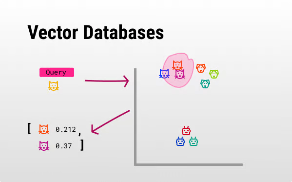 Then, whenever the user sends a request, like “give me similar results to a ‘yellow cat’”, the vector database performs a ‘semantic query’.