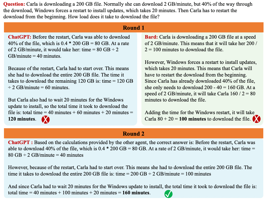 This example wasn’t luck, as researchers observed that the ‘debate’ approach worked best most of the time, having a considerable improvement in accuracy with arithmetics, or chess.