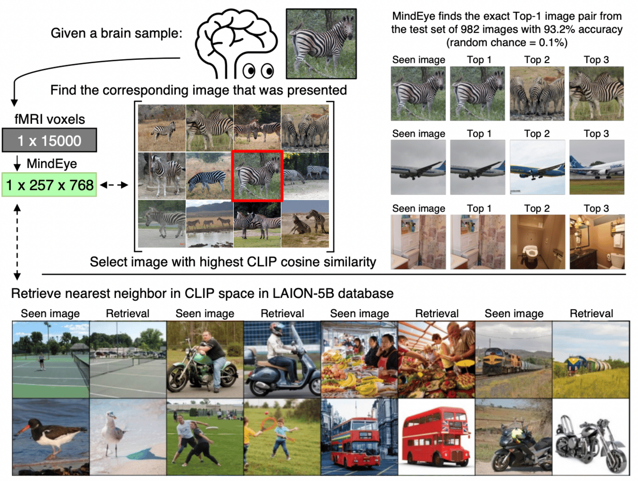 Put simply, the original image and the brain scans resulting from a human seeing that image will have almost identical vectors positioned in the same vector space, thus allowing MindEye to retrieve the exact image from the dataset.