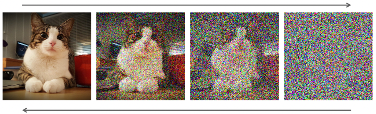 For any diffusion model like MidJourney or Stable Diffusion, the model departs from a noisy image and builds a new one following a diffusion process that transforms the noisy image into a new one.