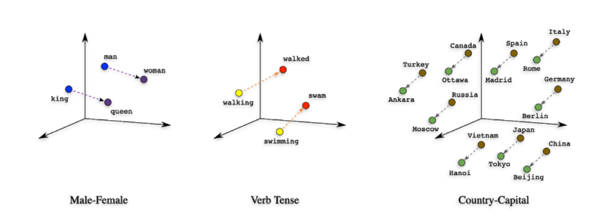 This way, as words become numbers, grammar, syntax, and semantical relationships between words become mathematical operations. Importantly, the closer the vectors representing two words are, the closer their semantical relationship is: