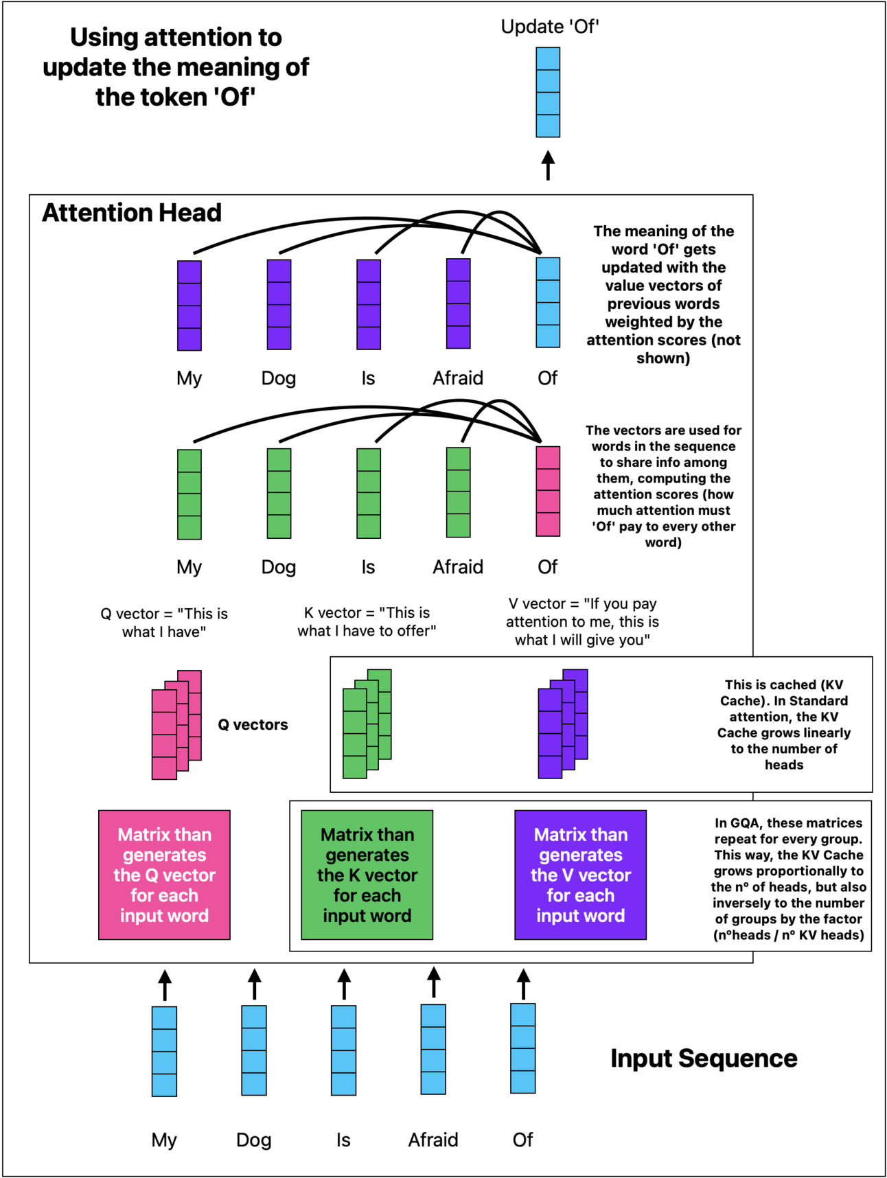 To predict the next word, they take the last word they predicted and update its meaning based on the relationship of this word to all previous ones. Looking at the diagram, the word ‘Of’ becomes not only a preposition expressing the relationship between a part and a whole but also captures the meaning of previous words in the sequence.