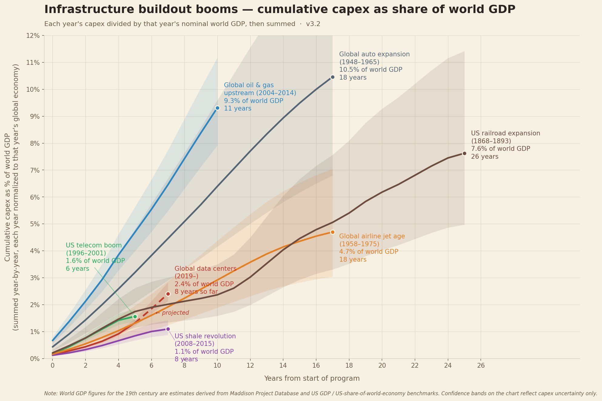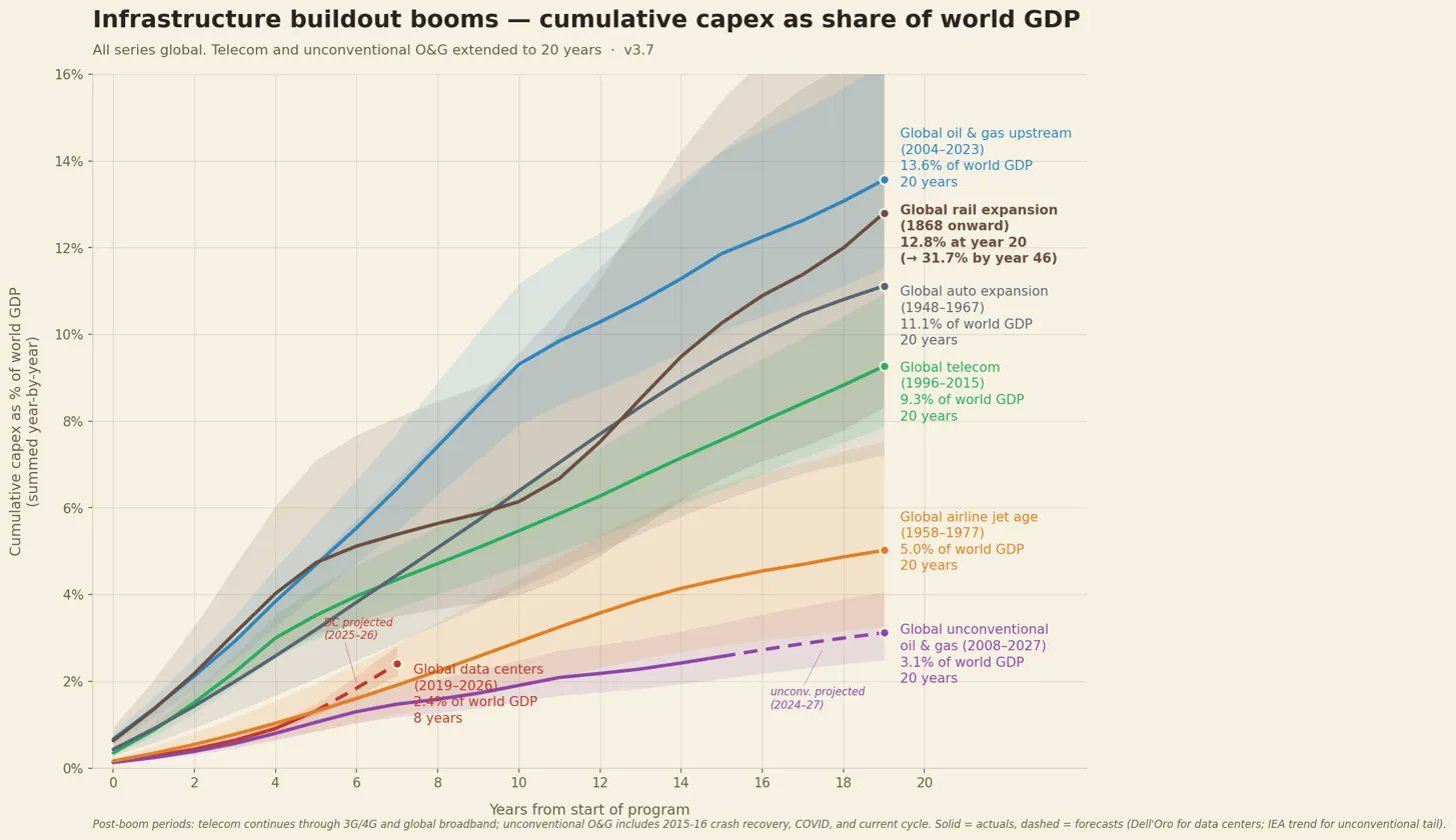 When you factor in world GDP, investment cycles like the railroad, auto, and oil expansions over the last few centuries were much, much larger.