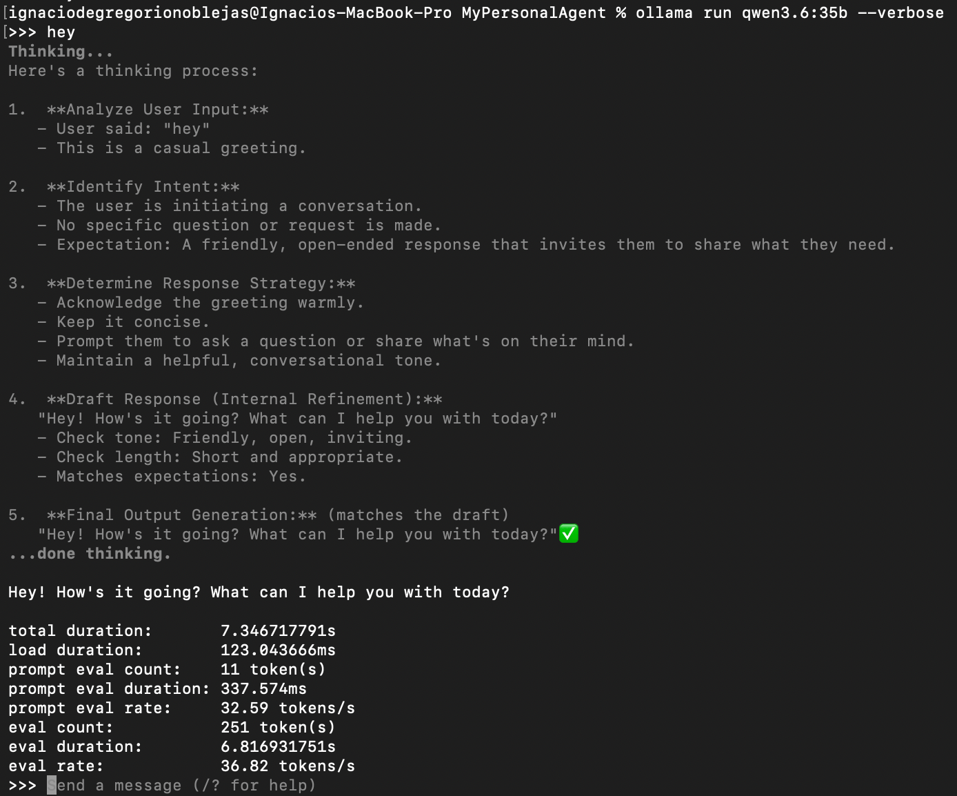 This is clearly insufficient for interactive, real-time conversations, but it’s more than enough when you want to use these models asynchronously as I intend; using them in 24/7 running servers on a Mac Mini or in a hosting service like Hostinger via cron jobs and similar, running in parallel executing jobs you don’t need to see the response too (at least not in real time) and for a fraction of a fraction of the cost (as you’re only paying fro the energy your hardware consumes).