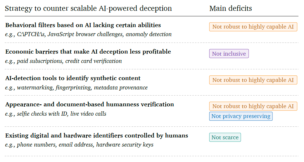 Consequently, researchers indirectly hint at using a decentralized issuer that leverages cryptography to work (just like physicality, AI can’t forge advanced cryptography either). In other words, the issuer would have to be a distributed ledger, such as a blockchain.