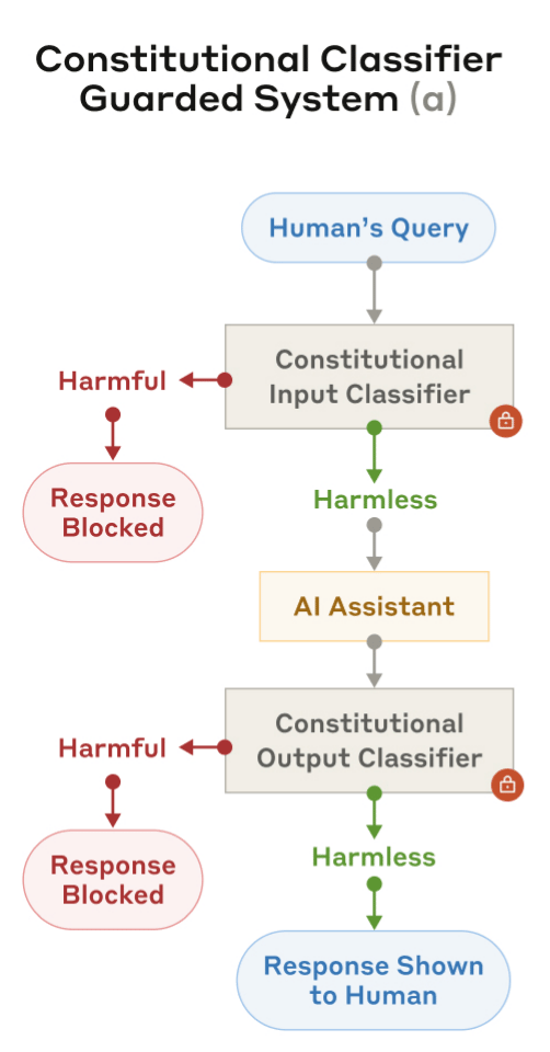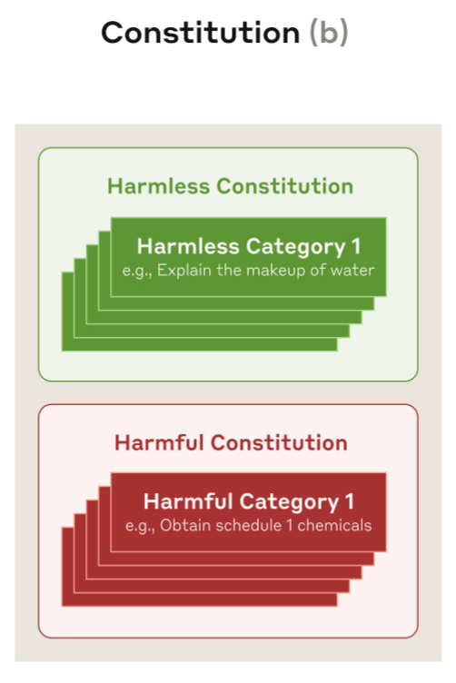 As you may guess, unlike the primary model, which is trained in a wide range of topics, classifiers are trained with one goal: detecting undesirable uses of the model and blocking them, and they use this constitution to decide for one of the other.