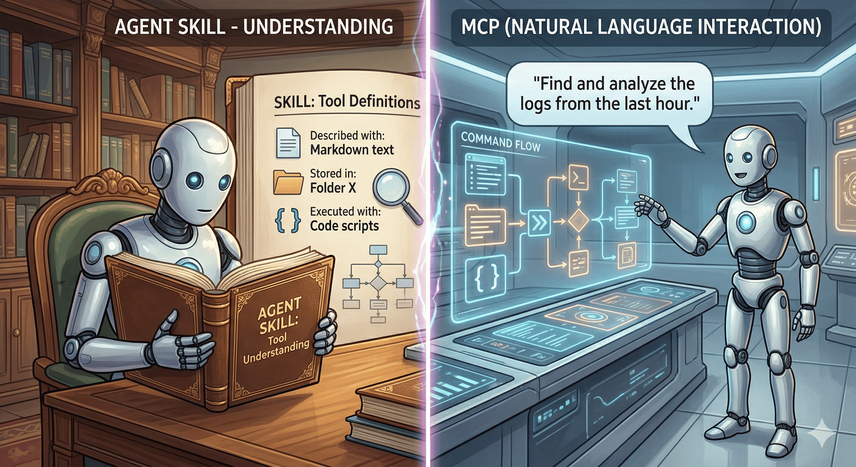 The difference is that an MCP lets the agent use a tool without knowing how, while a skill explains how to use it at runtime, like an instruction manual for your dishwasher while you're using it.