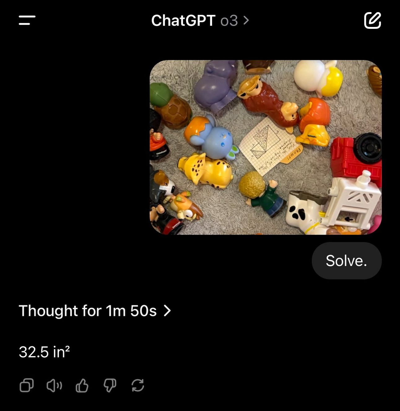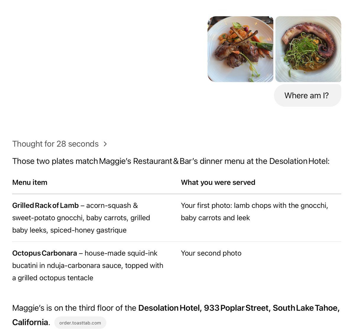 And before you dismiss my claim that vision is now very much solved at the business-practicality level (vision has other complexities like spatial reasoning that are very much to be learned yet, but most companies do not need spatial reasoning to use AIs for vision), you tell me if this image below is not mind-blowing (and the user who posted confirmed it’s a correct inference):