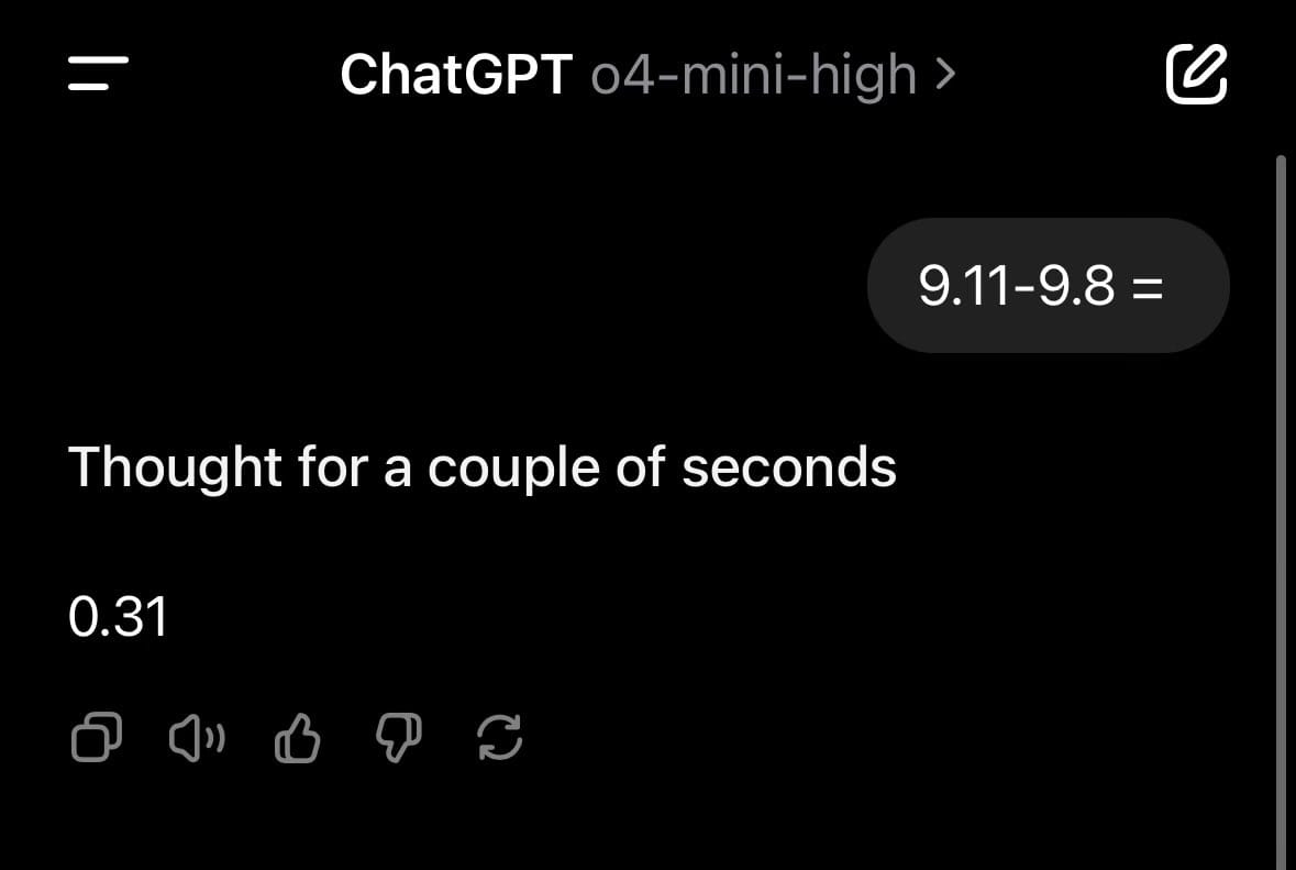 They are still unreliable in solving tasks like 9.11 - 9.8, giving results like 0.31