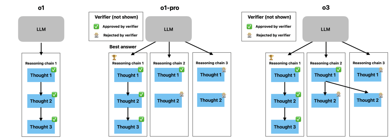 To give you an idea, not even the $200/month o1-pro fits this model criteria. It performs majority sampling, which involves generating several tries to solve the problem and choosing the best one. However, it’s not actually searching; it's increasing the likelihood of getting the right response by trying several times.