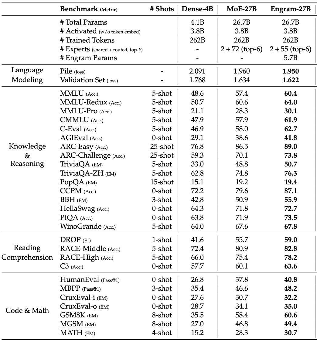 It packs more intelligence per unit of size. As the model now has actual memory to retrieve from, it can allocate more compute to actual hard tasks, making these models smarter and faster thinkers.