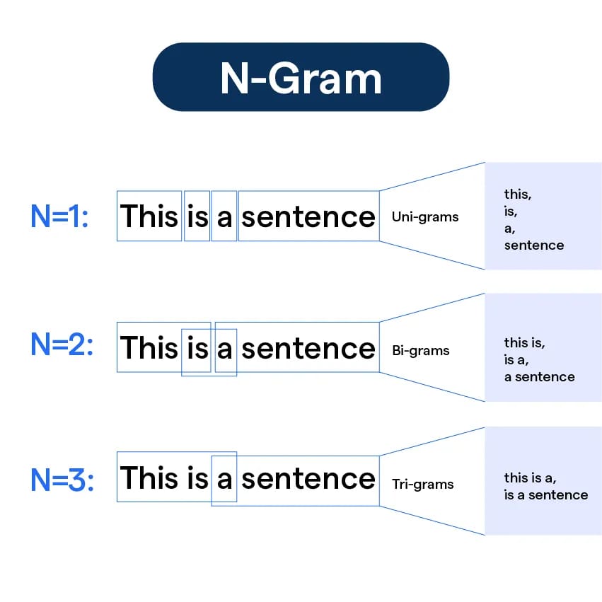 In simple terms, an n-gram is nothing but a model that, similarly to a Transformer, predicts the next word based on previous ones. However, they are limited; they make the prediction based on the n-1 previous words.