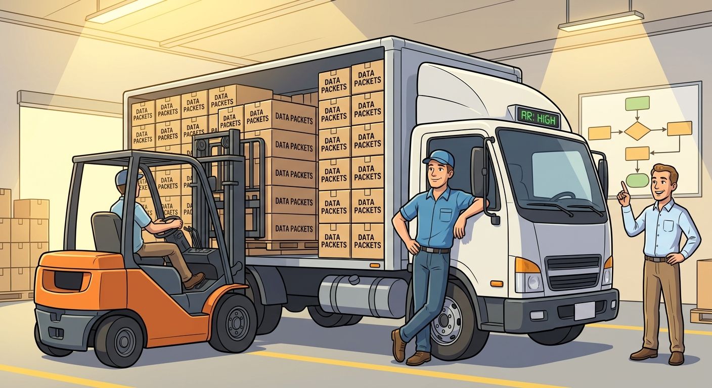 If your warehouse is efficient, the truck will leave with either 50 packages or close to that to execute the delivery route. In that scenario, the delivery truck can deliver a large number of packages per route, potentially all at once. This is efficient; your truck was designed for this. You’ve parallelized the delivery to fifty households very effectively.