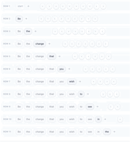 Let me explain. For example, say we want the AI to learn Gandhi’s famous quote, “Be the change you wish to see in the world.” You could have the model learn the quote by predicting each word one after the other. Instead, we give the model the entire sequence to predict.