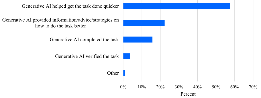 In all measured tasks, Generative AI represents a net improvement in productivity measured by time to completion, in some cases representing more than a 400% time decrease: